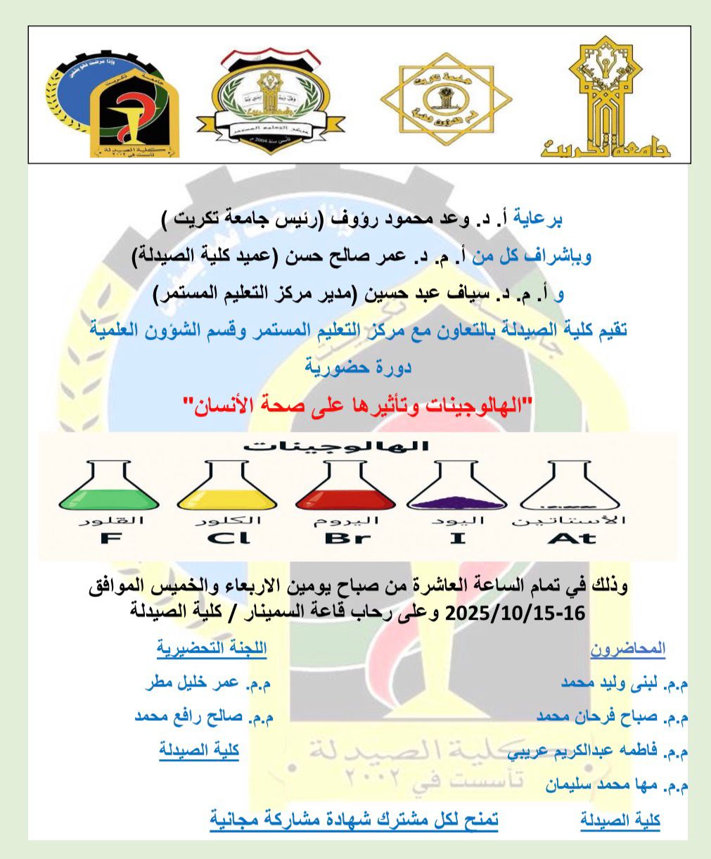 برعاية الأستاذ الدكتور وعد محمود رؤوف – رئيس جامعة تكريت، وبإشراف كل من: الأستاذ المساعد الدكتور...