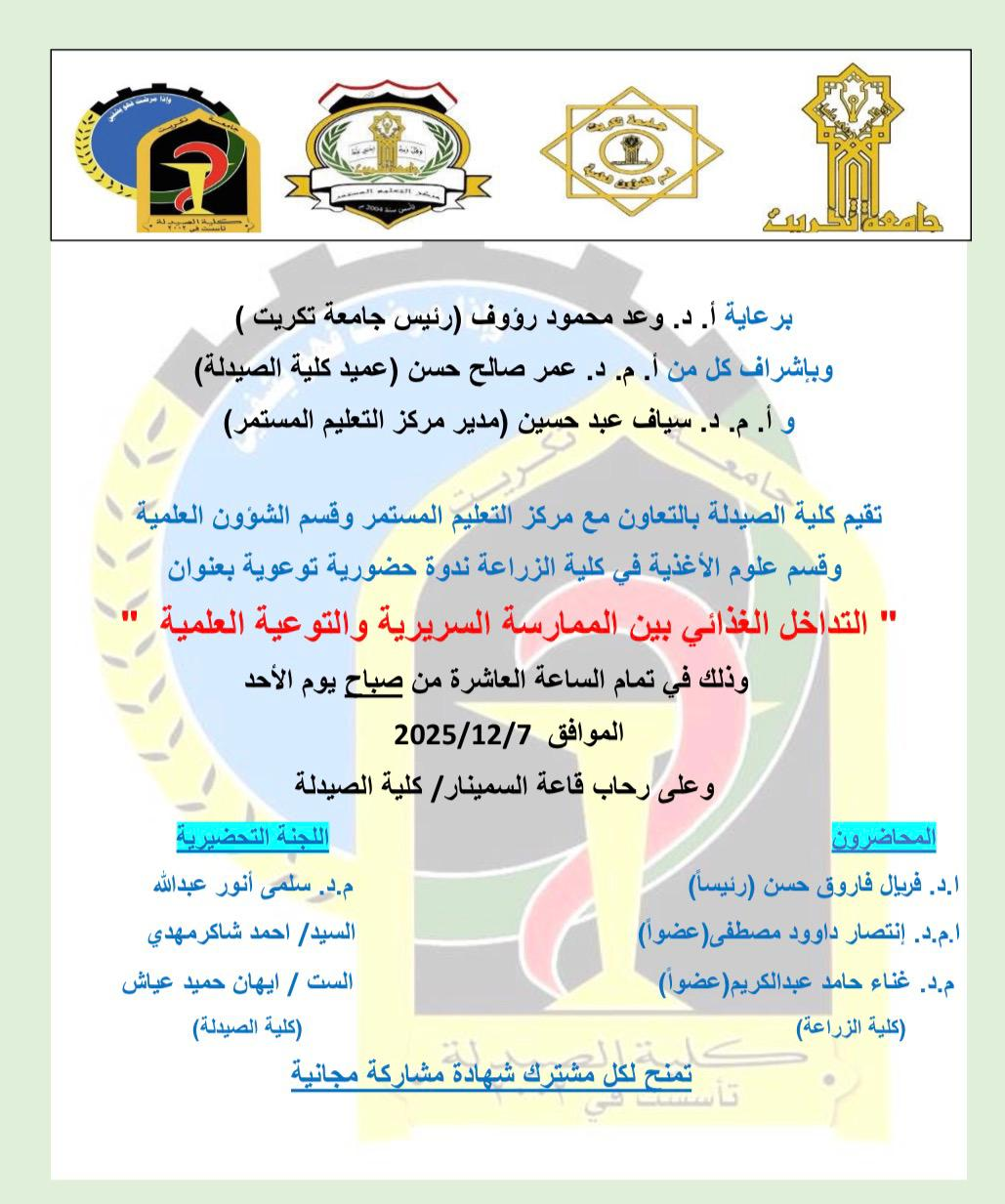برعاية الأستاذ الدكتور وعد محمود رؤوف رئيس جامعة تكريت، وبإشراف الأستاذ المساعد الدكتور عمر صالح...