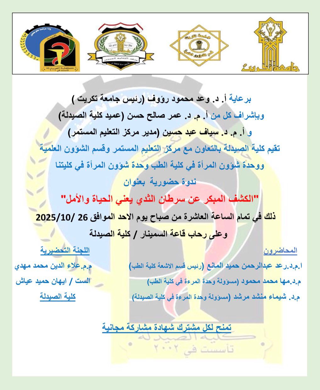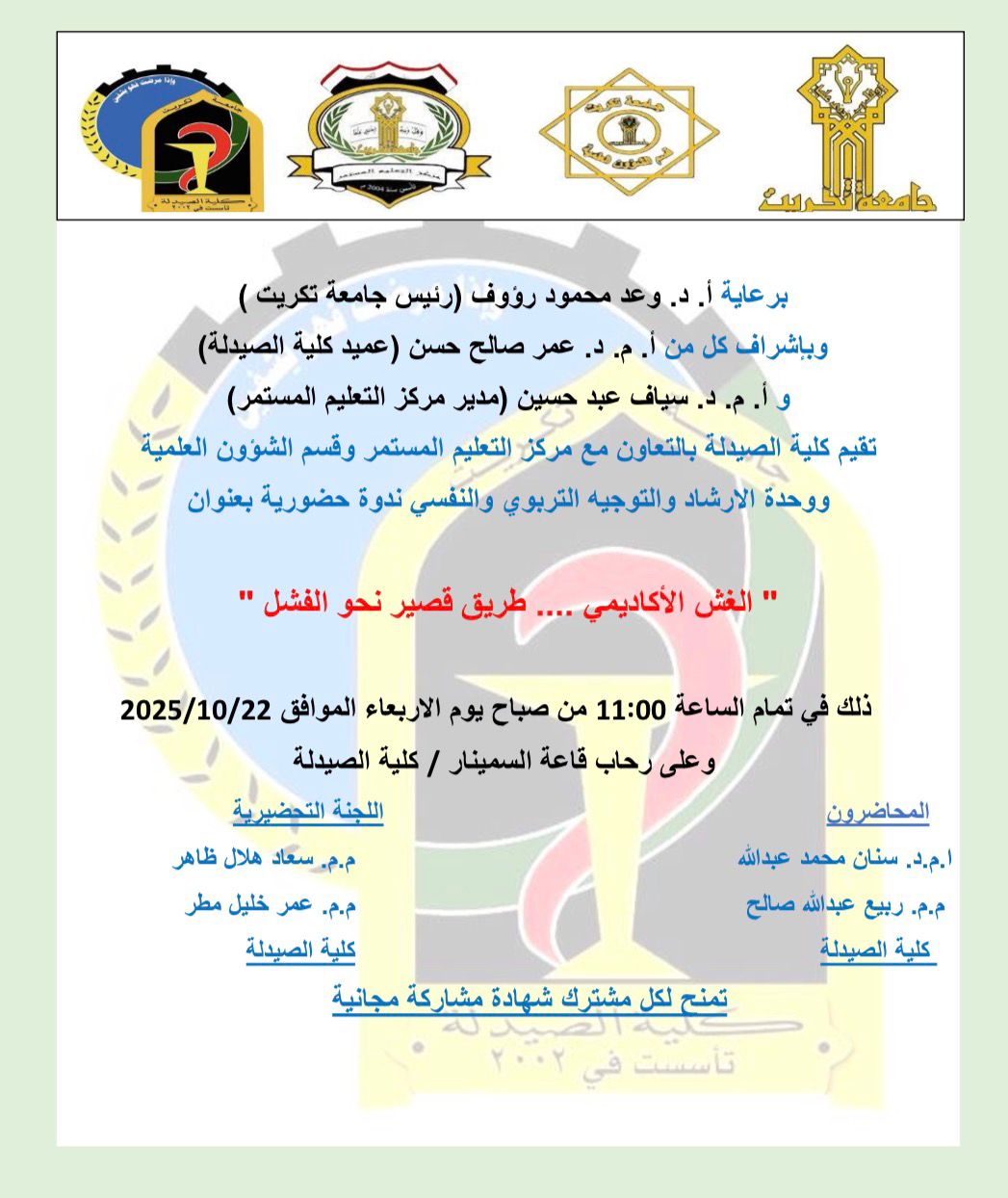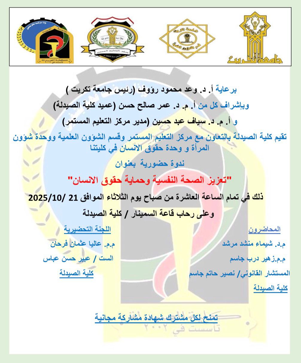 برعاية الأستاذ الدكتور وعد محمود رؤوف – رئيس جامعة تكريت، وبإشراف كل من الأستاذ المساعد الدكتور...