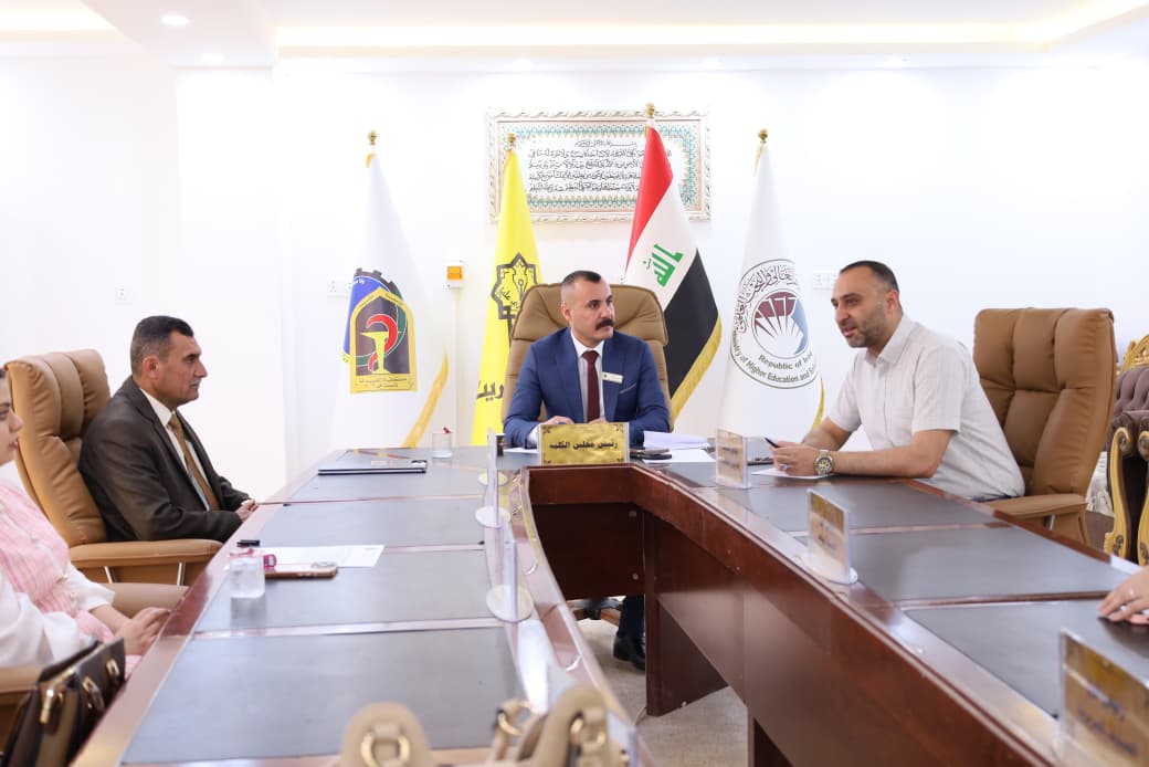 وجرى خلال الاجتماع مناقشة عدد من القضايا العلمية والأكاديمية التي تسهم في تطوير العملية التعليمية والارتقاء بالبرامج الدراسية، إذ تم بحث آلية إعداد الأسئلة الامتحانية وتنظيم سير الامتحانات والمراقبات، بما ينسجم مع الضوابط والتعليمات الجامعية المعتمدة ويحقق متطلبات الجودة الأكاديمية.