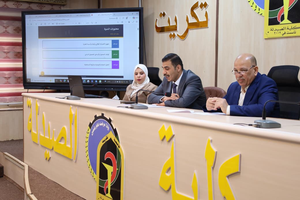 برعاية الأستاذ الدكتور وعد محمود رؤوف، رئيس جامعة تكريت المحترم، وبإشراف الأستاذ المساعد الدكتور عمر صالح حسن، عميد كلية الصيدلة، والأستاذ المساعد الدكتور سياف عبد حسين، مدير مركز التعليم المستمر، نظمت كلية الصيدلة، بالتعاون مع مركز التعليم المستمر، دورة علمية حضورية بعنوان: