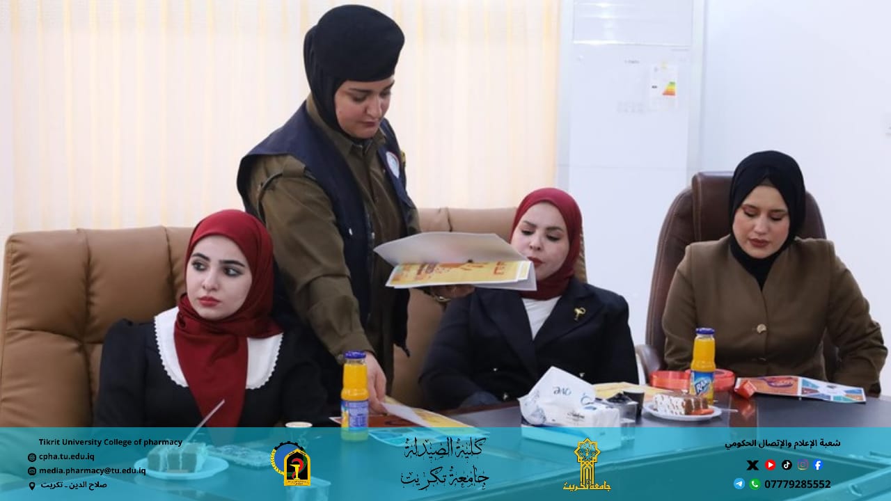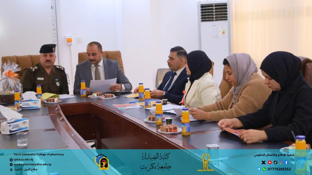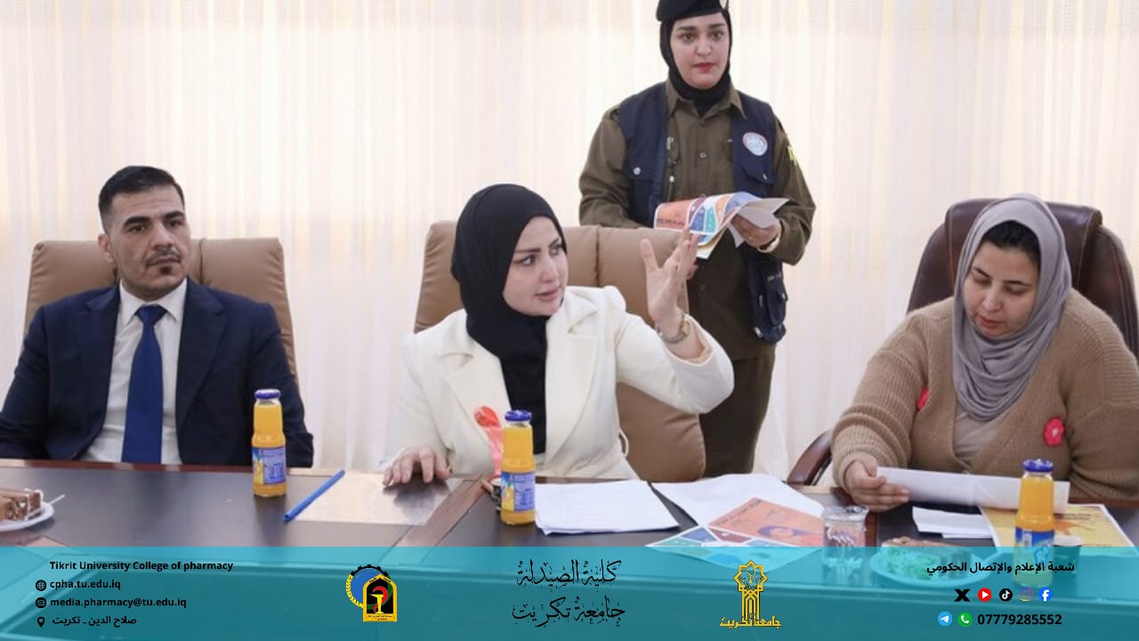 وبرعاية الأستاذ الدكتور وعد محمود رؤوف رئيس جامعة تكريت المحترم، وبإشراف الأستاذ المساعد الدكتور عمر صالح حسن عميد كلية الصيدلة المحترم، والأستاذ المساعد الدكتور سياف عبد حسين مدير مركز التعليم المستمر المحترم.