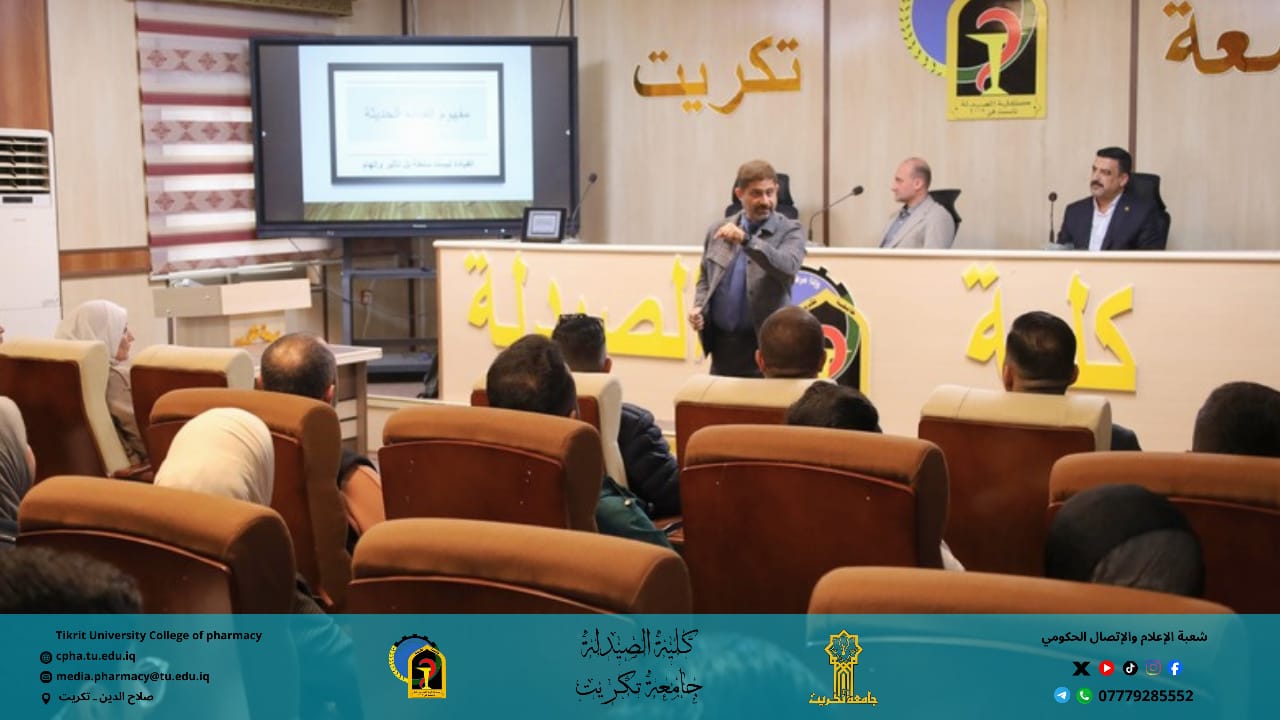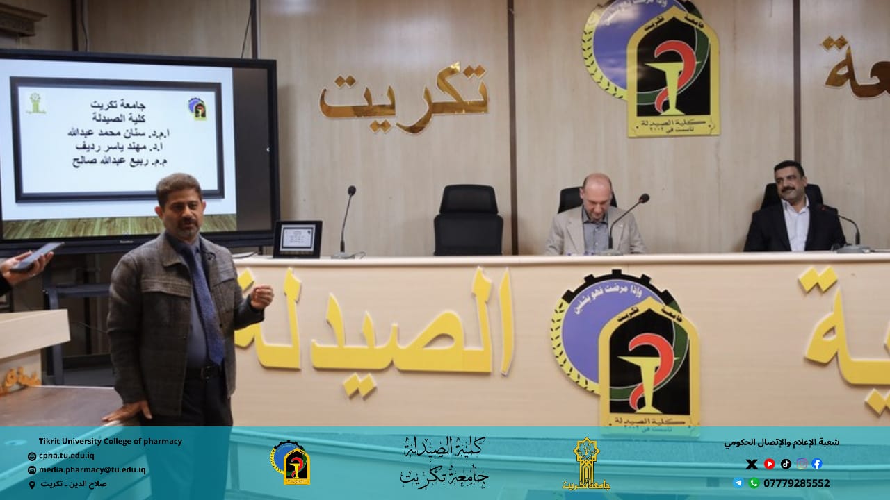 وذلك برعاية الأستاذ الدكتور وعد محمود رؤوف رئيس جامعة تكريت، وبإشراف كل من الأستاذ المساعد الدكتور عمر صالح حسن عميد كلية الصيدلة، والأستاذ المساعد الدكتور سياف عبد حسين مدير مركز التعليم المستمر.