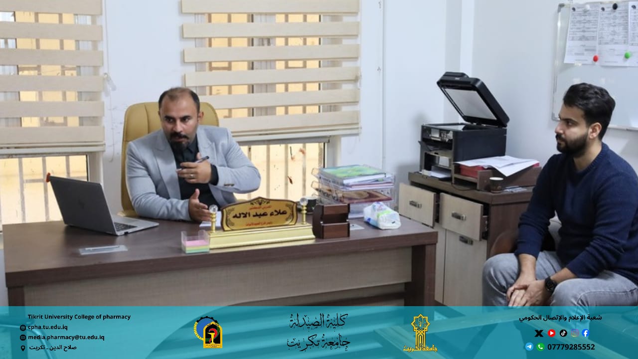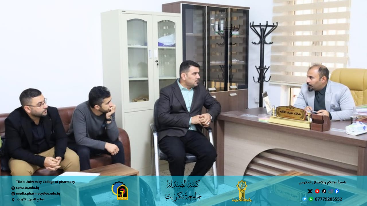 عقد فرع الصيدلانيات في كلية الصيدلة بجامعة تكريت، اليوم الخميس الموافق 18/12/2025، اجتماعاً موسعاً مع الكادر التدريسي في الفرع، برئاسة م. د. علاء عبدالإله عبدالقادر رئيس فرع الصيدلانيات، وذلك في إطار متابعة سير العملية التعليمية والاستعدادات الخاصة بالفصل الدراسي الأول.
