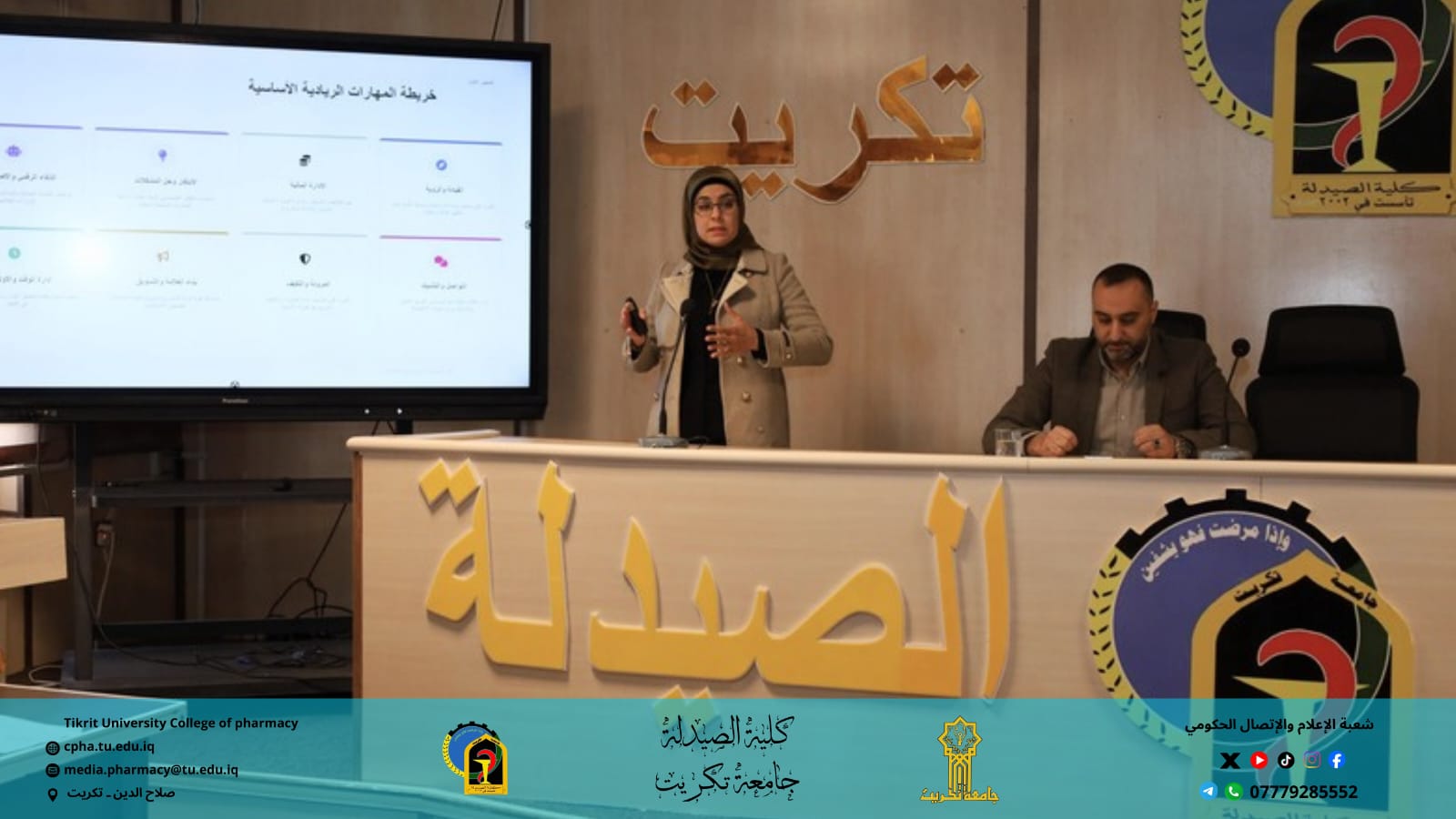 ضمن فعاليات الأسبوع العراقي لريادة الأعمال، وبرعاية الأستاذ الدكتور وعد محمود رؤوف رئيس جامعة تكريت، وإشراف الأستاذ المساعد الدكتور عمر صالح حسن عميد كلية الصيدلة، والأستاذ المساعد الدكتور سياف عبد حسين مدير مركز التعليم المستمر، نظمت كلية الصيدلة بالتعاون مع مركز التعليم المستمر وقسم الشؤون العلمية ووحدة الحاضنة التكنولوجية في كليتنا ندوة علمية حضورية بعنوان: