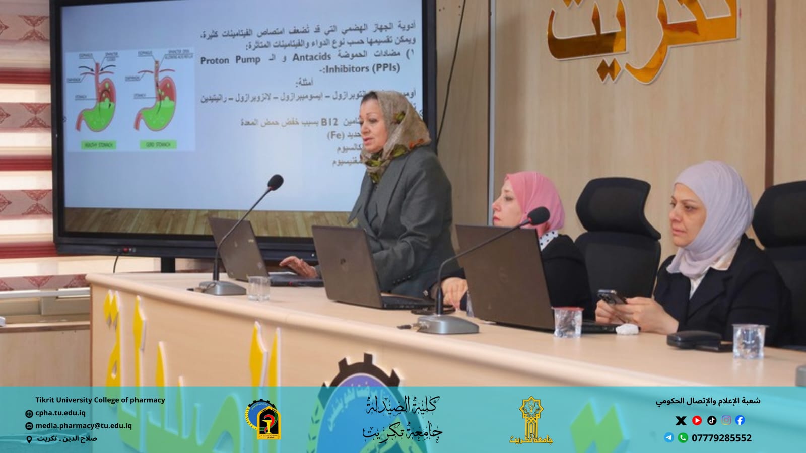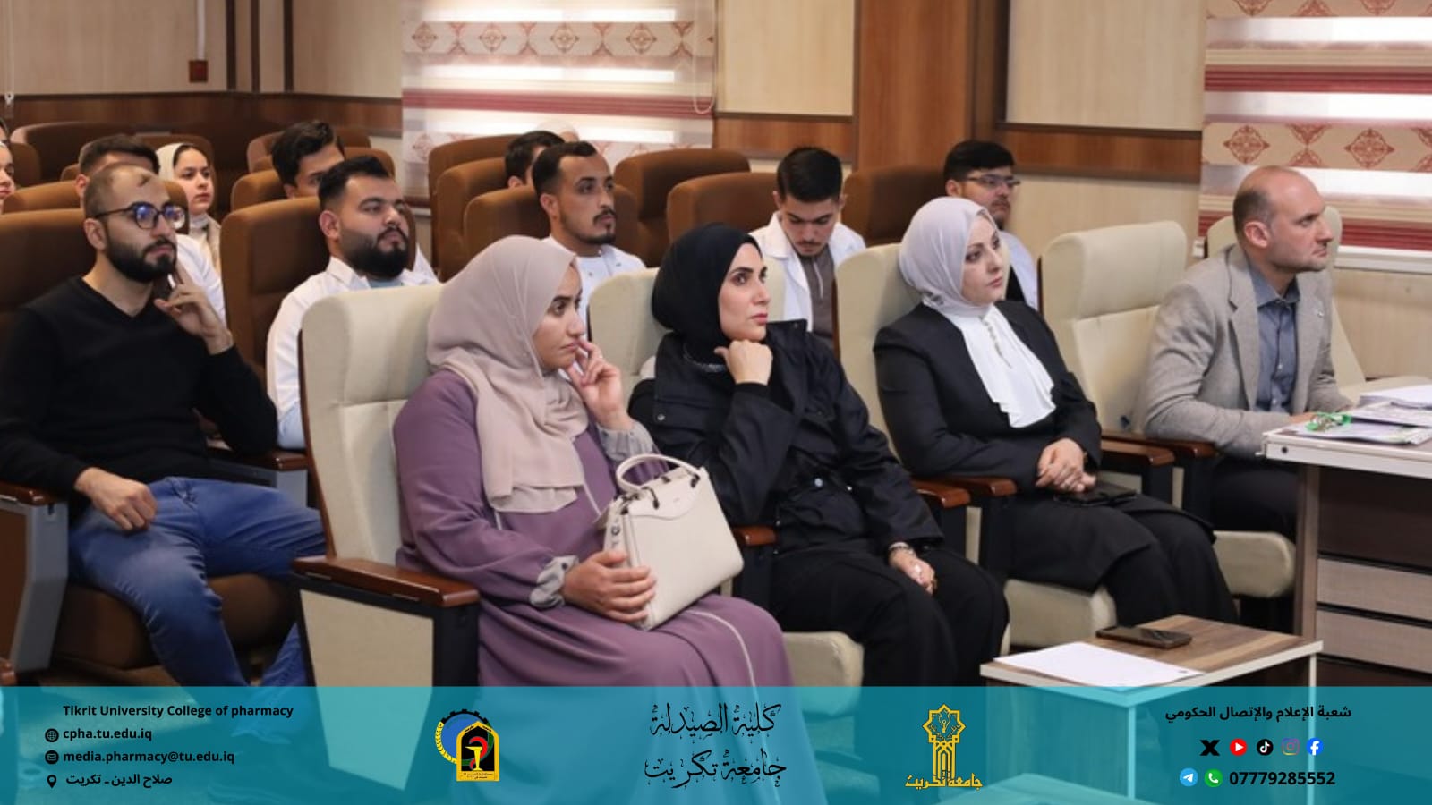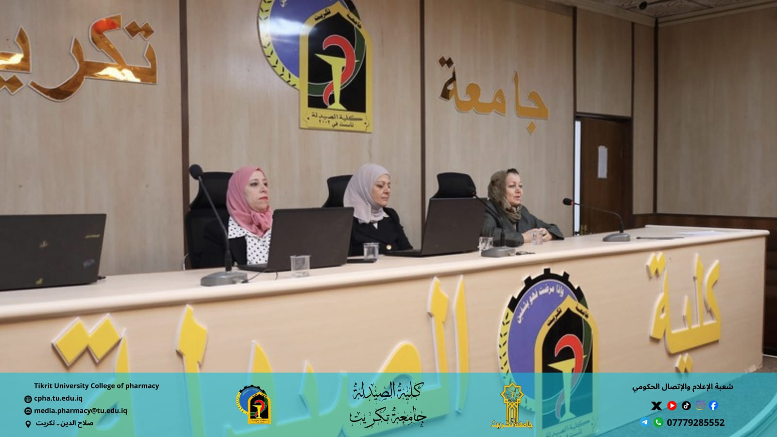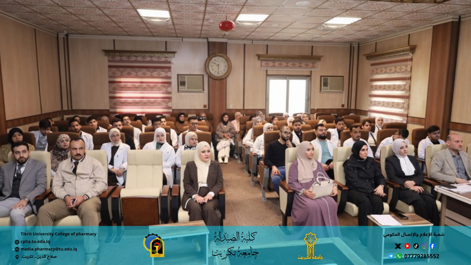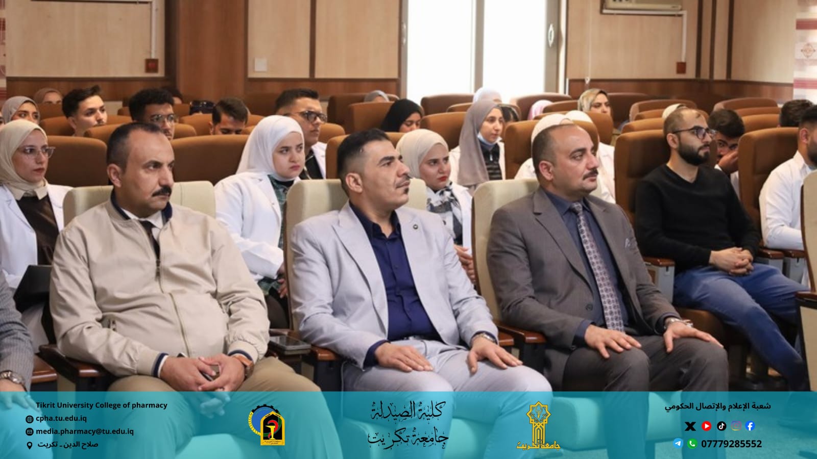 برعاية الأستاذ الدكتور وعد محمود رؤوف رئيس جامعة تكريت، وبإشراف الأستاذ المساعد الدكتور عمر صالح حسن عميد كلية الصيدلة، والأستاذ المساعد الدكتور سياف عبد حسين مدير مركز التعليم المستمر، نظمت كلية الصيدلة بالتعاون مع مركز التعليم المستمر وقسم الشؤون العلمية وقسم علوم الأغذية في كلية الزراعة ندوة حضورية توعوية بعنوان: "التداخل الغذائي بين الممارسة السريرية والتوعية العلمية"، وذلك يوم الأحد الموافق 7 / 12 / 2025 على قاعة السمنر في كلية الصيدلة.