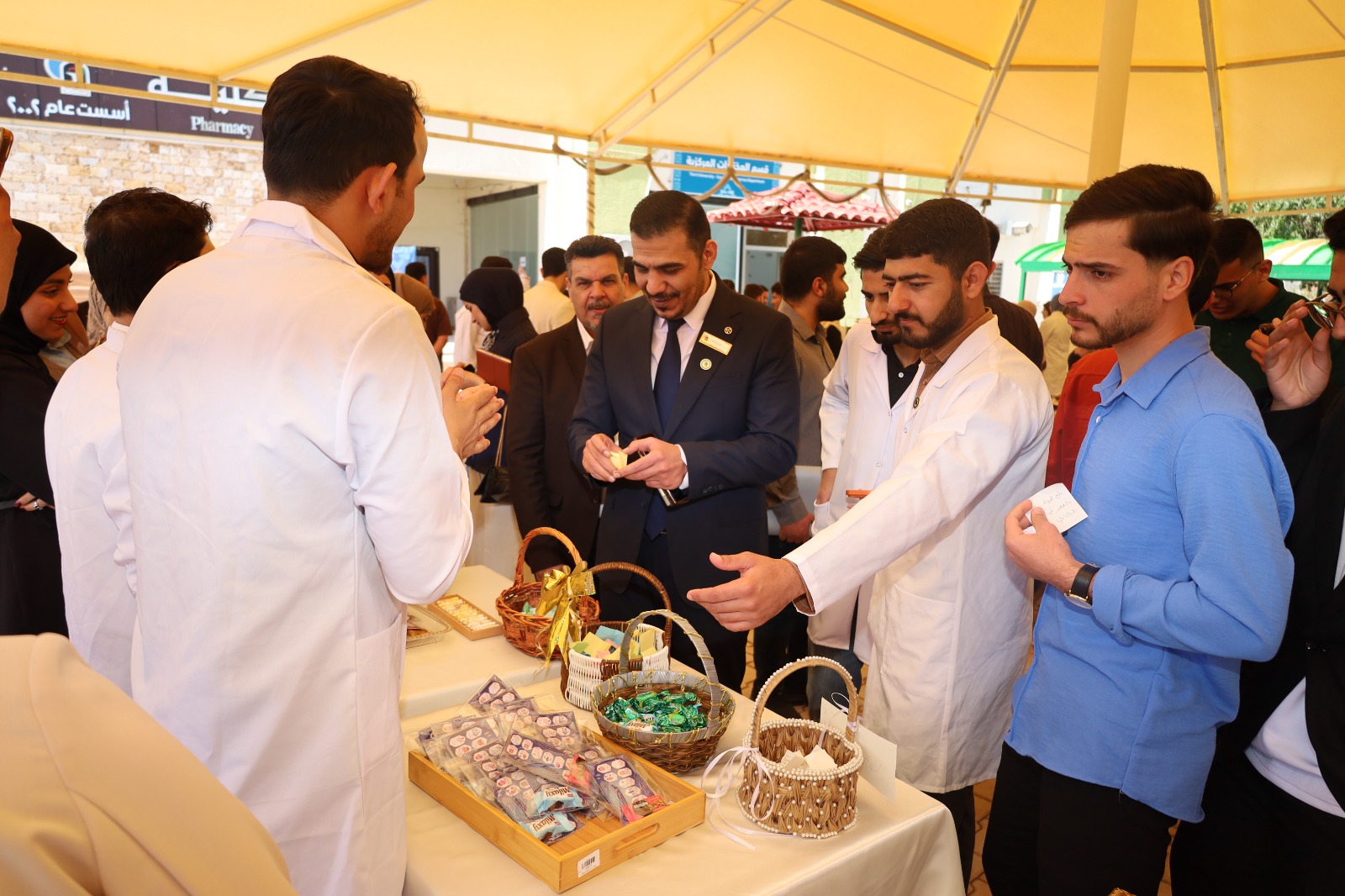 نظمت كلية الصيدلة، صباح اليوم الأربعاء الموافق 2026/4/8، احتفالاً مميزاً في حدائقها بمناسبة يوم الجامعة وعام الاعتماد المؤسسي، وسط أجواء أكاديمية وثقافية عكست روح الانتماء والتميز.