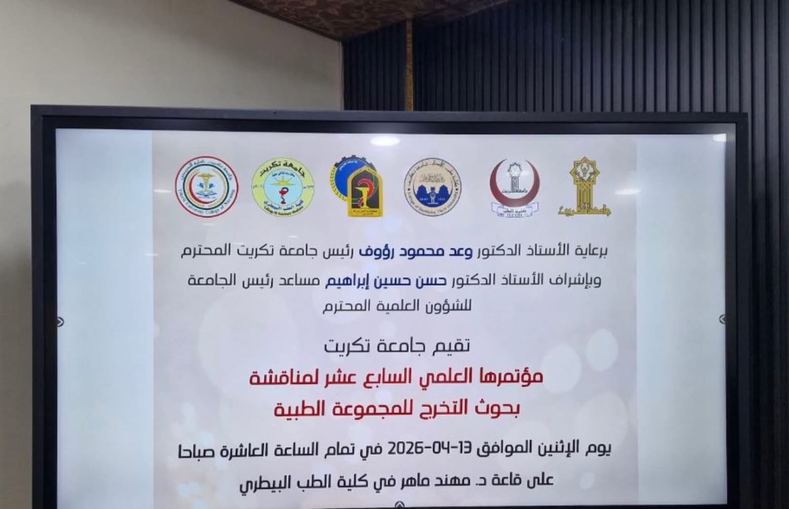 حصدت كلية الصيدلة المركز الأول في مؤتمر بحوث التخرج للمجموعة الطبية الذي نظمته جامعة تكريت، برعاية السيد رئيس الجامعة الأستاذ الدكتور وعد محمود رؤوف المحترم، وبإشراف الأستاذ الدكتور حسن حسين إبراهيم مساعد رئيس الجامعة للشؤون العلمية المحترم، وذلك على قاعة د. مهند ماهر في كلية الطب البيطري، ضمن فعاليات المؤتمر العلمي السابع عشر.