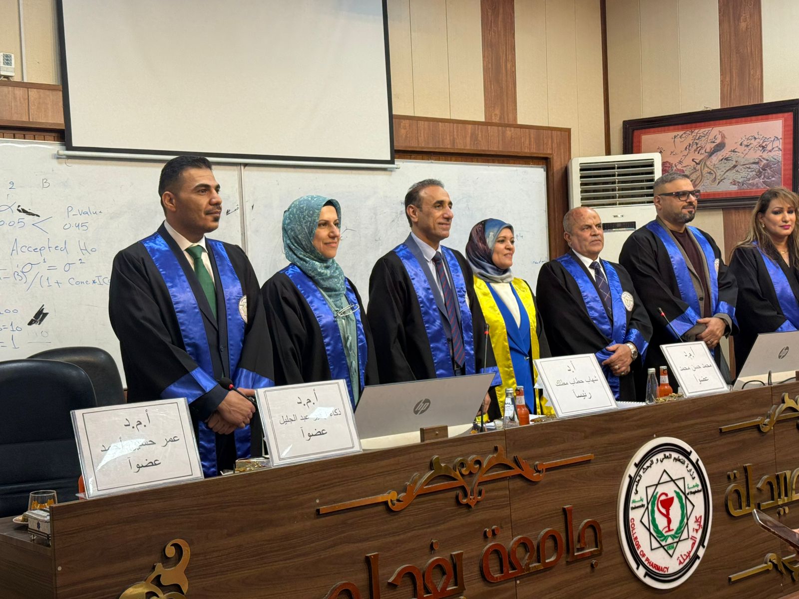وقد أجريت المناقشة في تمام الساعة التاسعة من صباح يوم الأحد الموافق 2025/11/16، على قاعة الأنطاكي في كلية الصيدلة جامعة بغداد.