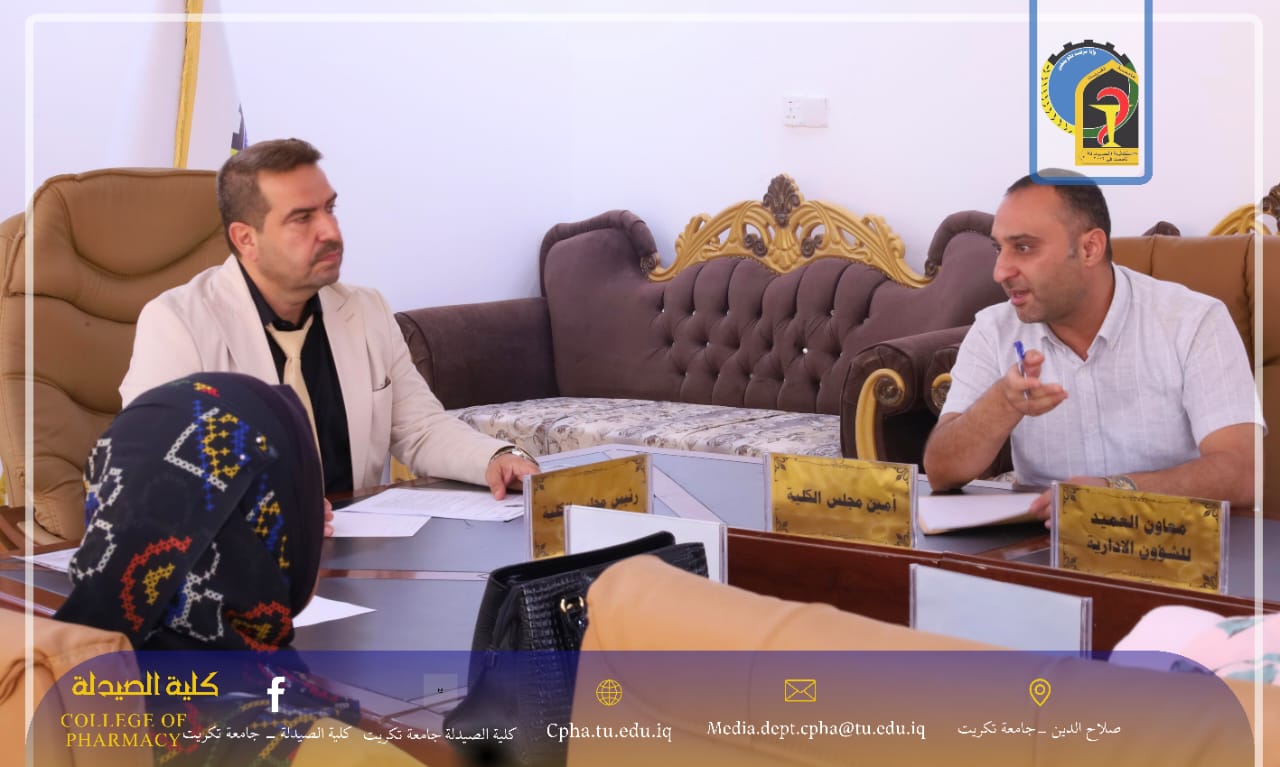 في إطار السعي المستمر لتطوير العملية التعليمية والبحثية في كليتنا، عقد فرع الكيمياء الصيدلانية اجتماعًا برئاسة المدرس الدكتور علي حسين مصطفى، بحضور أساتذة الفرع وعدد من التدريسيين المعنيين.