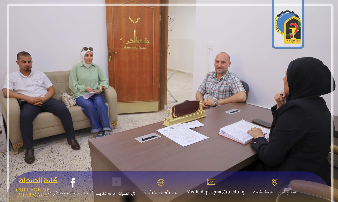 عقد فرع الصيدلة السريرية في كلية الصيدلة – جامعة تكريت اجتماعه الأول برئاسة المدرس الدكتورة شيماء صالح خضر، وبحضور أساتذة الفرع والتدريسيين المعنيين، لمناقشة جملة من القضايا العلمية والأكاديمية ذات الصلة بتطوير الأداء والارتقاء بالبرامج الدراسية.