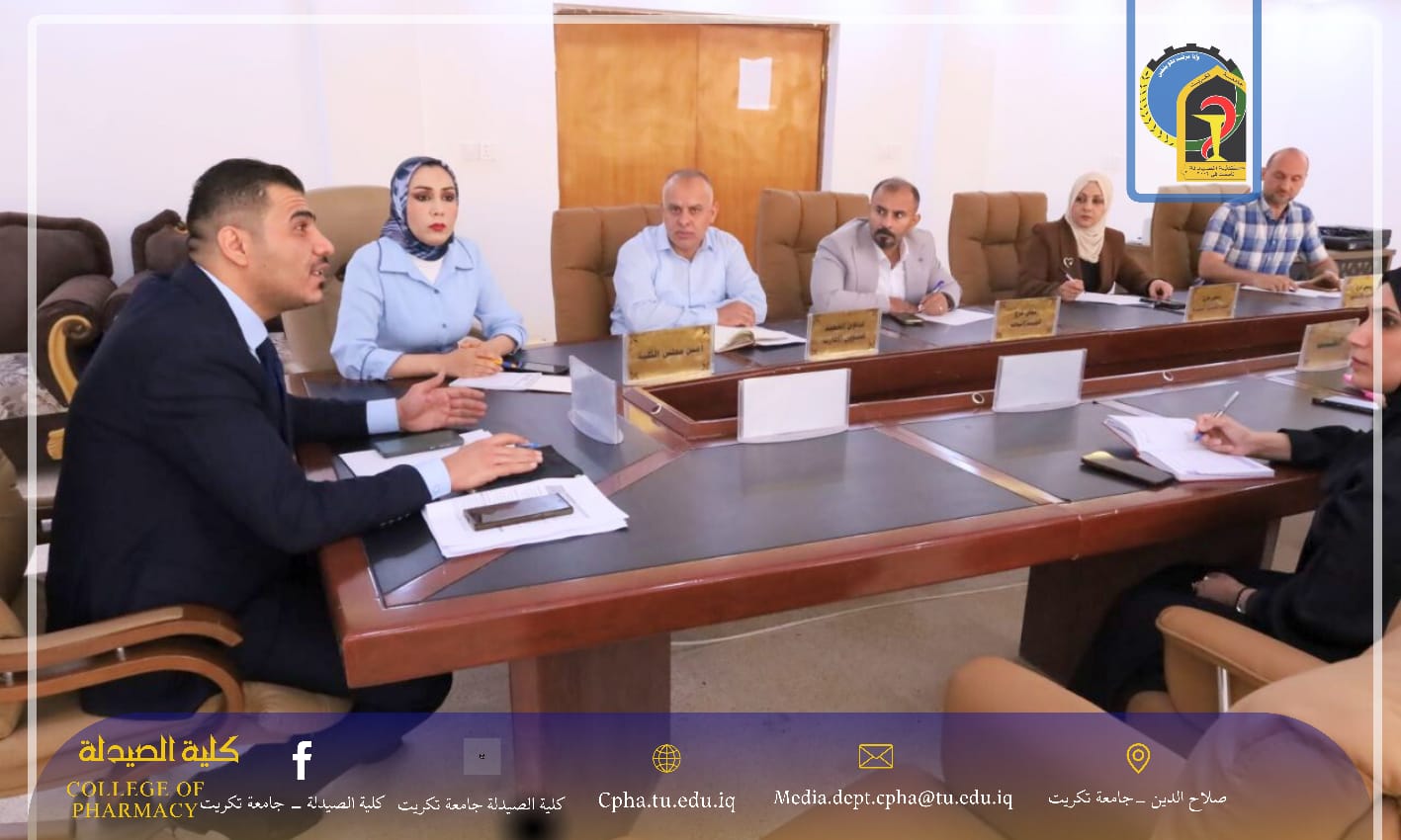عقد مجلس كلية الصيدلة جلسته الثانية للعام الدراسي (2025–2026)، برئاسة الأستاذ المساعد الدكتور عمر حسين أحمد – معاون العميد للشؤون العلمية، وبحضور المدرس الدكتور نهاد حسين أحمد – معاون العميد للشؤون الإدارية، ورؤساء الفروع العلمية كافة. حيث خول السيد العميد المعاون العلمي بإدارة الجلسة