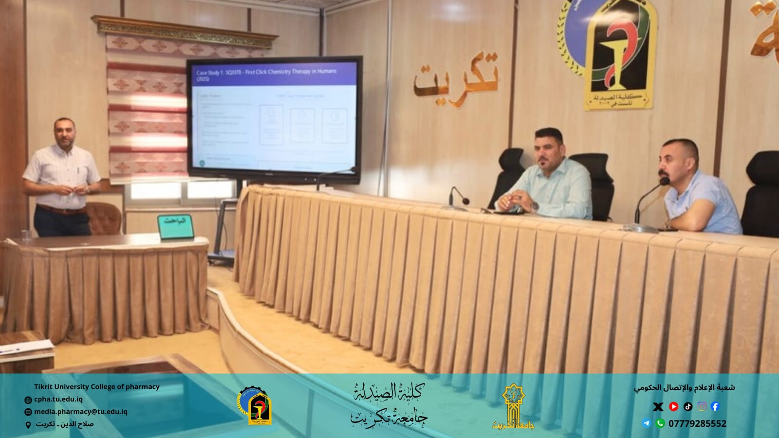 في اليوم الثاني: أ.م.د. علي حسين مصطفى محاضرة عن التطبيقات البحثية المتقدمة لهذه التفاعلات في تطوير المركبات الدوائية.
