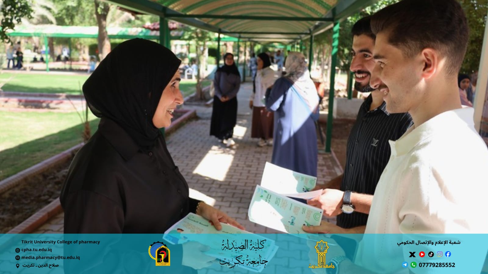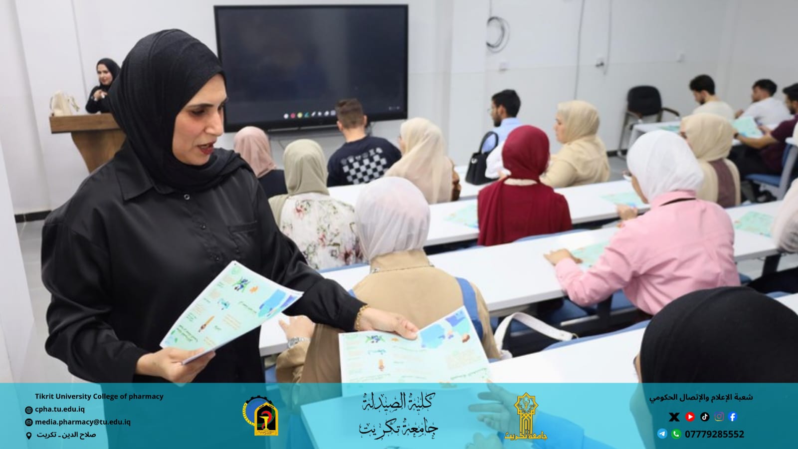 نظم فرع الصيدلة السريرية بالتعاون مع شعبة الإعلام والاتصال الحكومي في كلية الصيدلة حملة توعية وإرشاد شملت الحدائق والقاعات الدراسية في الكلية، بهدف تعزيز الوعي بأهمية الصحة النفسية ودورها في تحقيق التوازن والسعادة في حياة الطلبة.