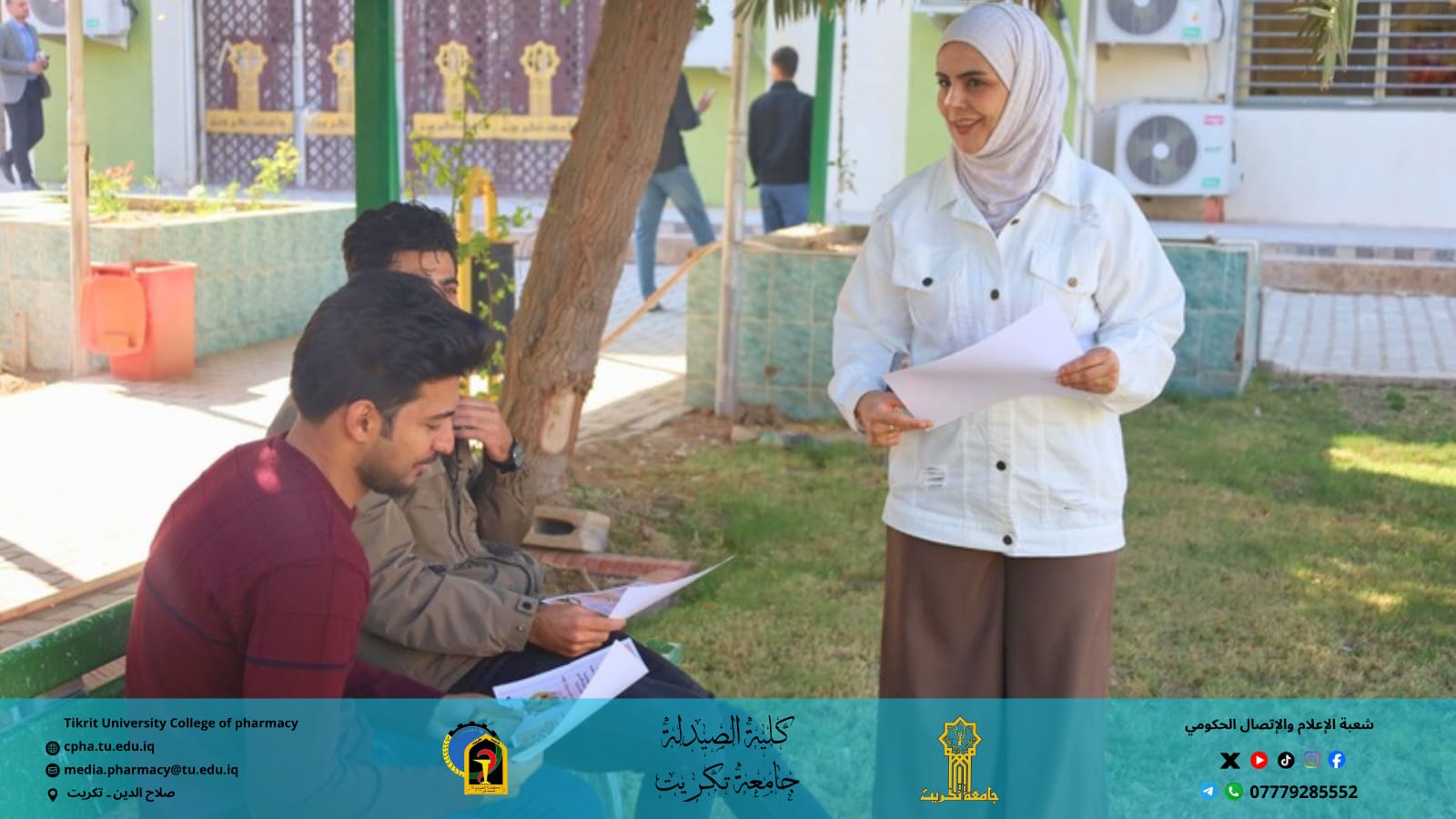بناءً على توجيهات وزارة التعليم العالي والبحث العلمي، وضمن إشراف الأستاذ الدكتور وعد محمود رؤوف رئيس جامعة تكريت المحترم على حملات الأسبوع العراقي لمكافحة المخدرات، وبمتابعة مباشرة من عميد كلية الصيدلة الأستاذ المساعد الدكتور عمر صالح حسن، نظمت كلية الصيدلة حملة توعوية وإرشادية حول مخاطر المخدرات وآثارها الصحية والاجتماعية.