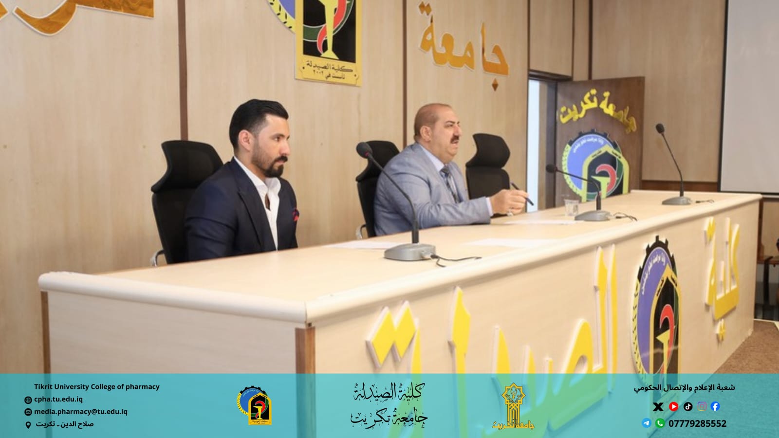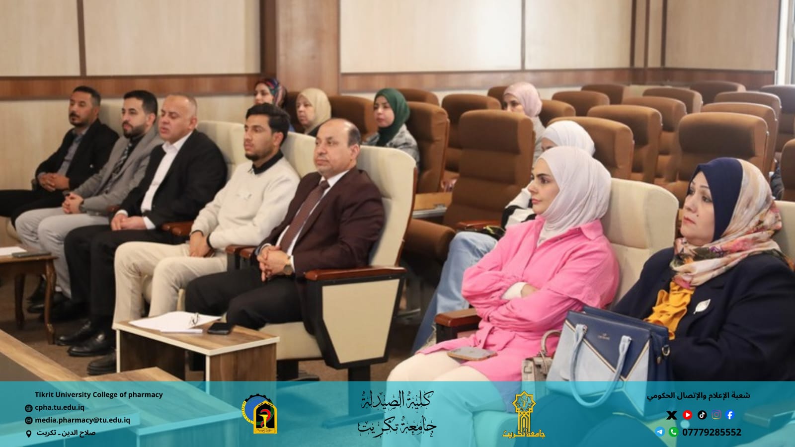 برعاية الأستاذ الدكتور وعد محمود رؤوف رئيس جامعة تكريت، وبإشراف الأستاذ المساعد الدكتور عمر صالح حسن عميد كلية الصيدلة، والأستاذ المساعد الدكتور سياف عبد حسين مدير مركز التعليم المستمر.