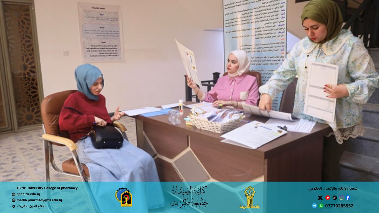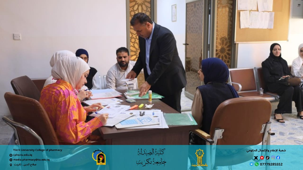 تواصل كلية الصيدلة في جامعة تكريت أعمال تسجيل الطلبة الجدد المقبولين في المرحلة الأولى للعام الدراسي 2025–2026، وذلك بعد أن باشرت لجنة استقبال الطلبة مهامها منذ يوم الأحد الماضي، وسط أجواء تنظيمية متميزة وإشراف مباشر من عمادة الكلية.