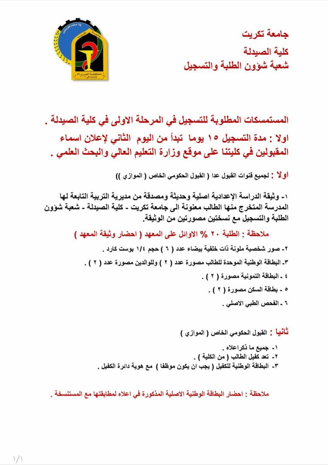إعلان مهم | إلى جميع الطلبة المقبولين في كليتنا على قناة التعليم الحكومي الخاص الصباحي ( الموازي)