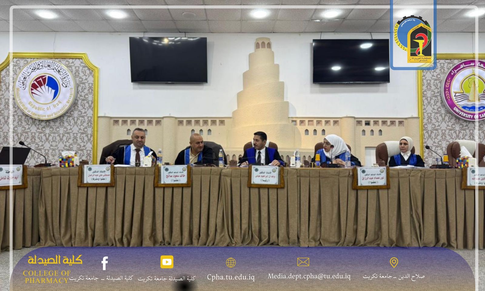 برعاية الأستاذ الدكتور وعد محمود رؤوف رئيس جامعة تكريت المحترم، كرم السيد عميد كلية الصيدلة الأستاذ المساعد الدكتور عمر صالح حسن الطالبة نرمين محمود شهاب من المرحلة الثانية، تقديراً لمشاركتها المتميزة في بطولة الجامعة للشطرنج وتميزها بحصولها على المركز الأول.