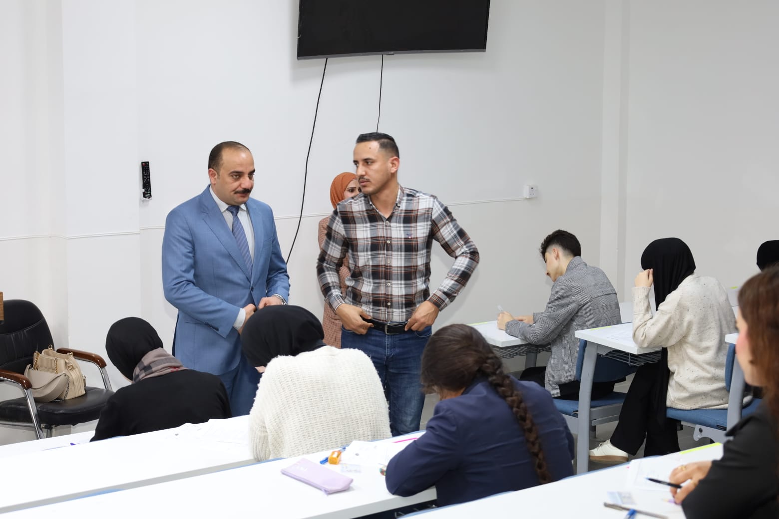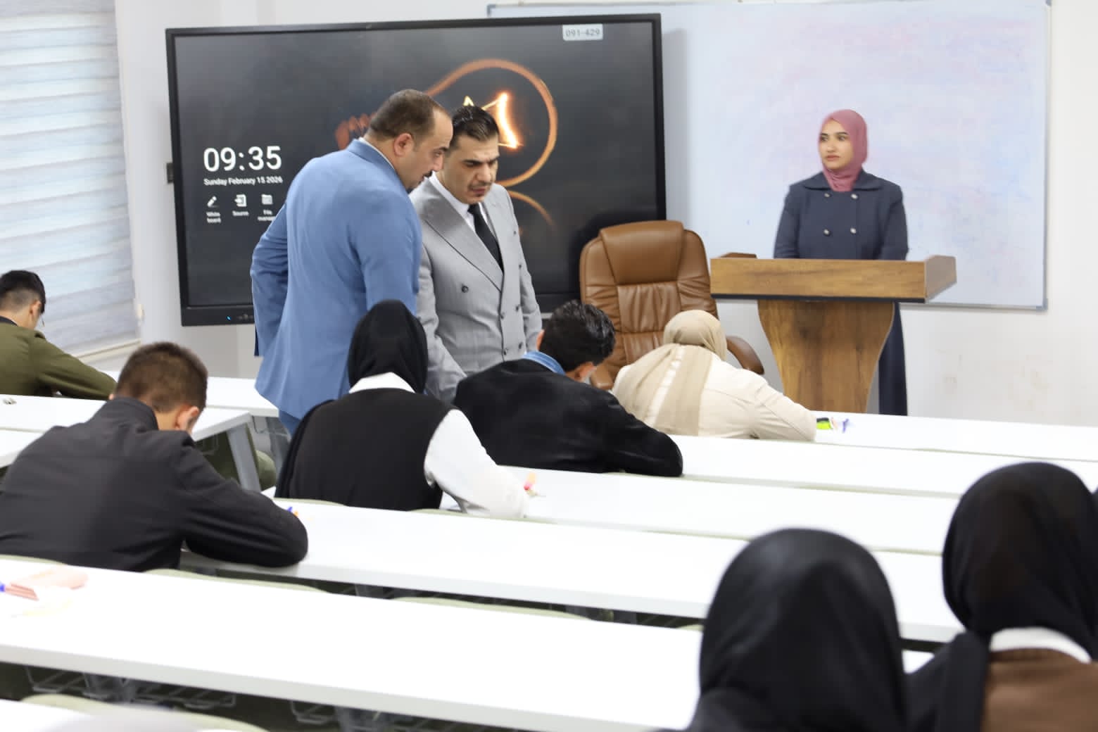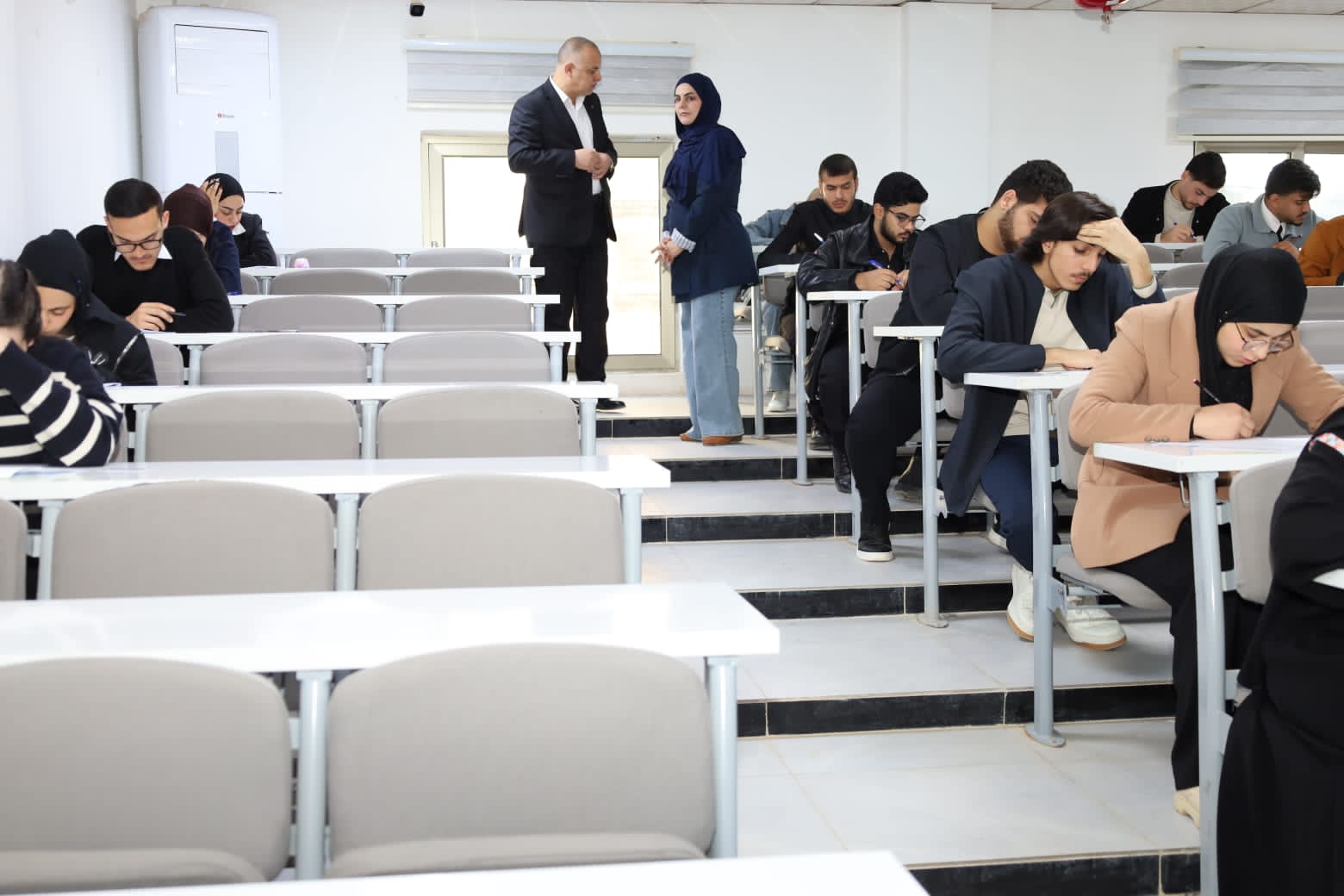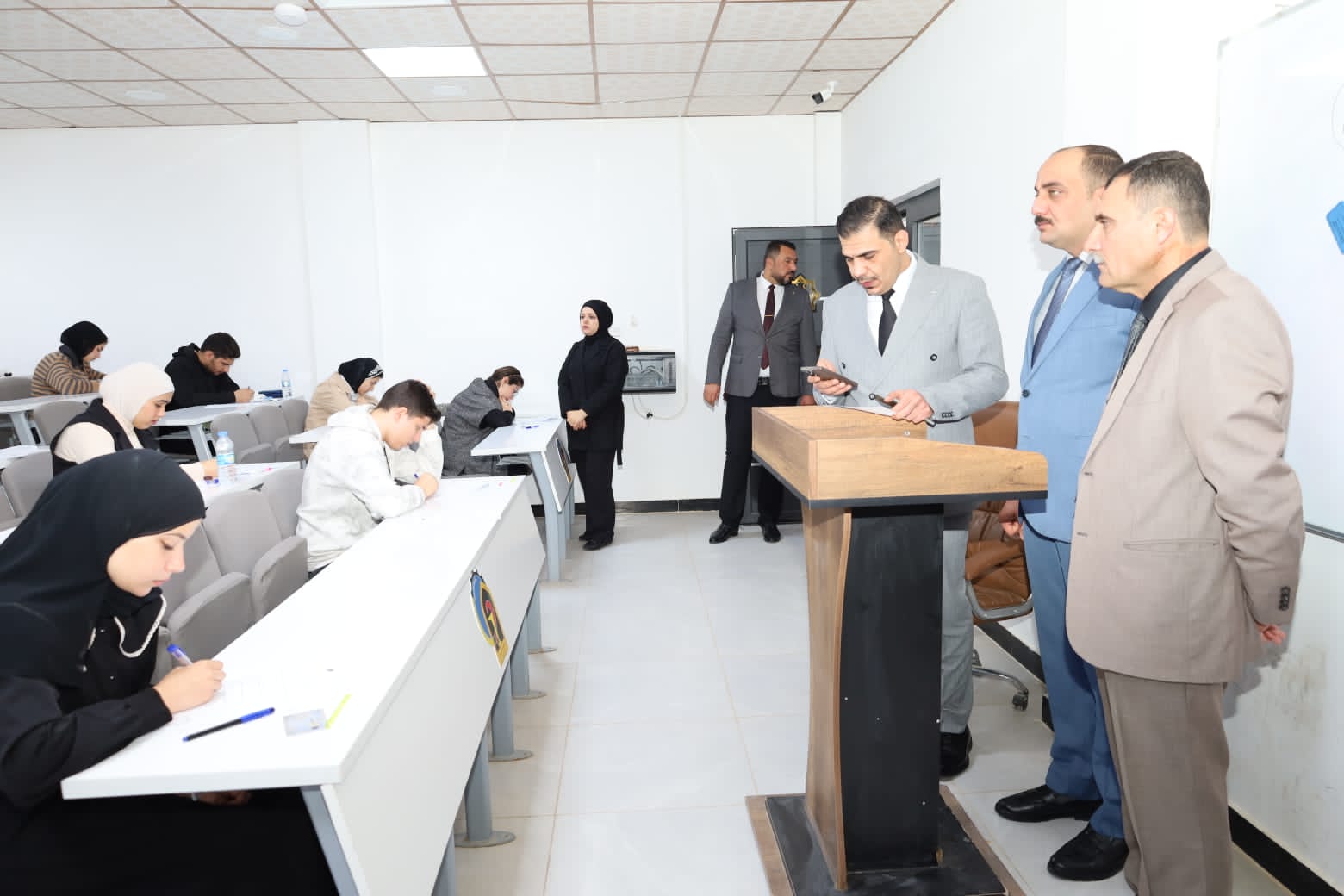 وشهدت القاعات الامتحانية متابعة ميدانية مباشرة من قبل الأستاذ المساعد الدكتور عمر صالح حسن المحترم، عميد الكلية، يرافقه الأستاذ المساعد الدكتور نهاد حسين أحمد، معاون العميد للشؤون الإدارية، والأستاذ المساعد الدكتور عمر حسين أحمد، معاون العميد للشؤون العلمية، حيث اطلعوا على سير الامتحانات وانسيابية الإجراءات التنظيمية، مؤكدين أهمية الالتزام بالتعليمات الامتحانية وتوفير جميع المستلزمات اللوجستية والخدمية التي تسهم في دعم الطلبة وتهيئة الأجواء المناسبة لأداء امتحاناتهم بكل يسر واطمئنان.