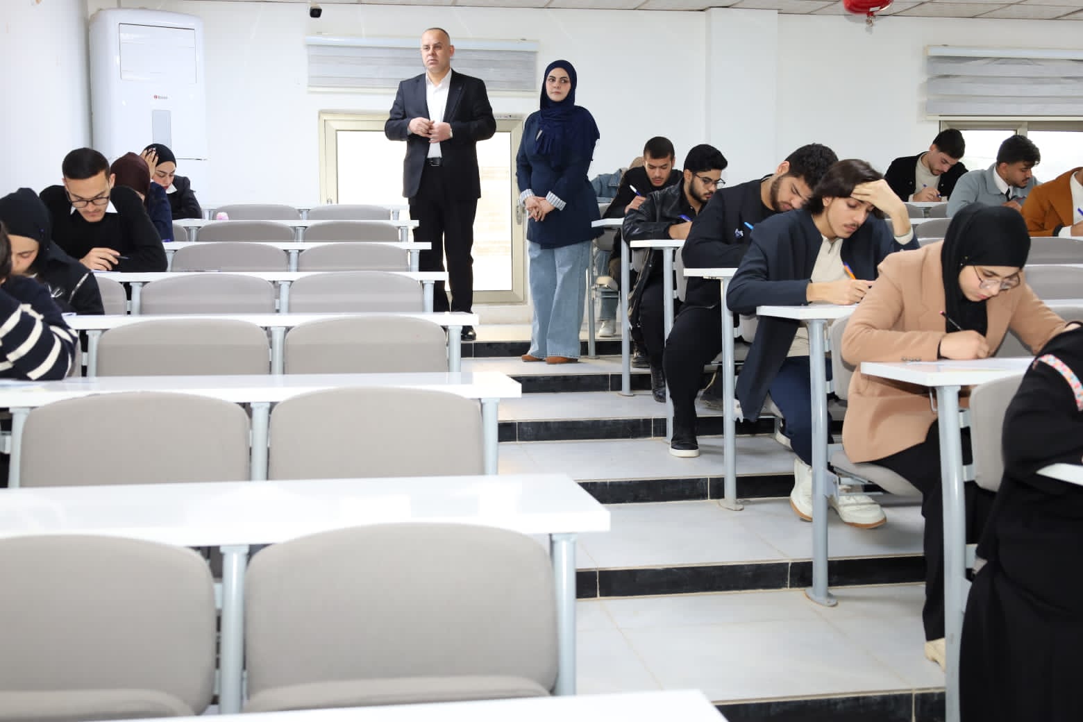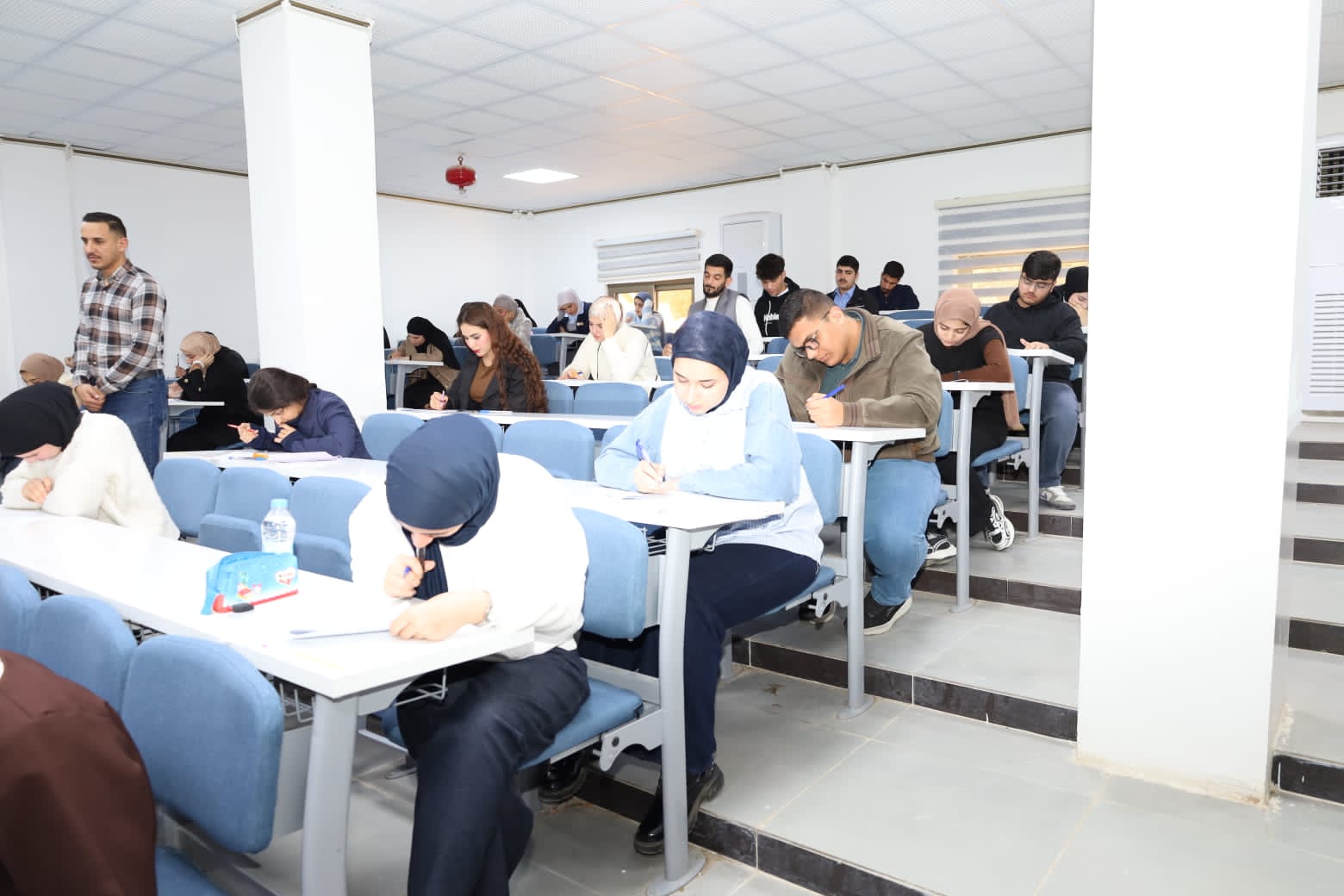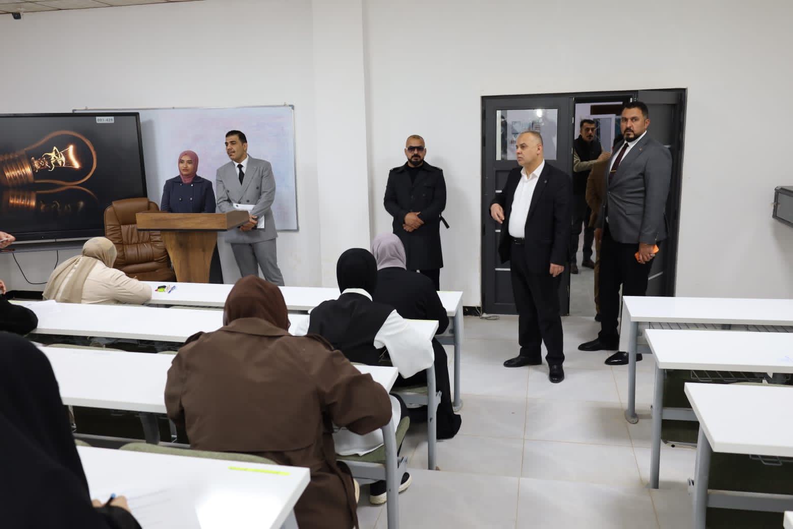 وشهدت القاعات الامتحانية متابعة ميدانية مباشرة من قبل الأستاذ المساعد الدكتور عمر صالح حسن المحترم، عميد الكلية، يرافقه الأستاذ المساعد الدكتور نهاد حسين أحمد، معاون العميد للشؤون الإدارية، والأستاذ المساعد الدكتور عمر حسين أحمد، معاون العميد للشؤون العلمية، حيث اطلعوا على سير الامتحانات وانسيابية الإجراءات التنظيمية، مؤكدين أهمية الالتزام بالتعليمات الامتحانية وتوفير جميع المستلزمات اللوجستية والخدمية التي تسهم في دعم الطلبة وتهيئة الأجواء المناسبة لأداء امتحاناتهم بكل يسر واطمئنان.