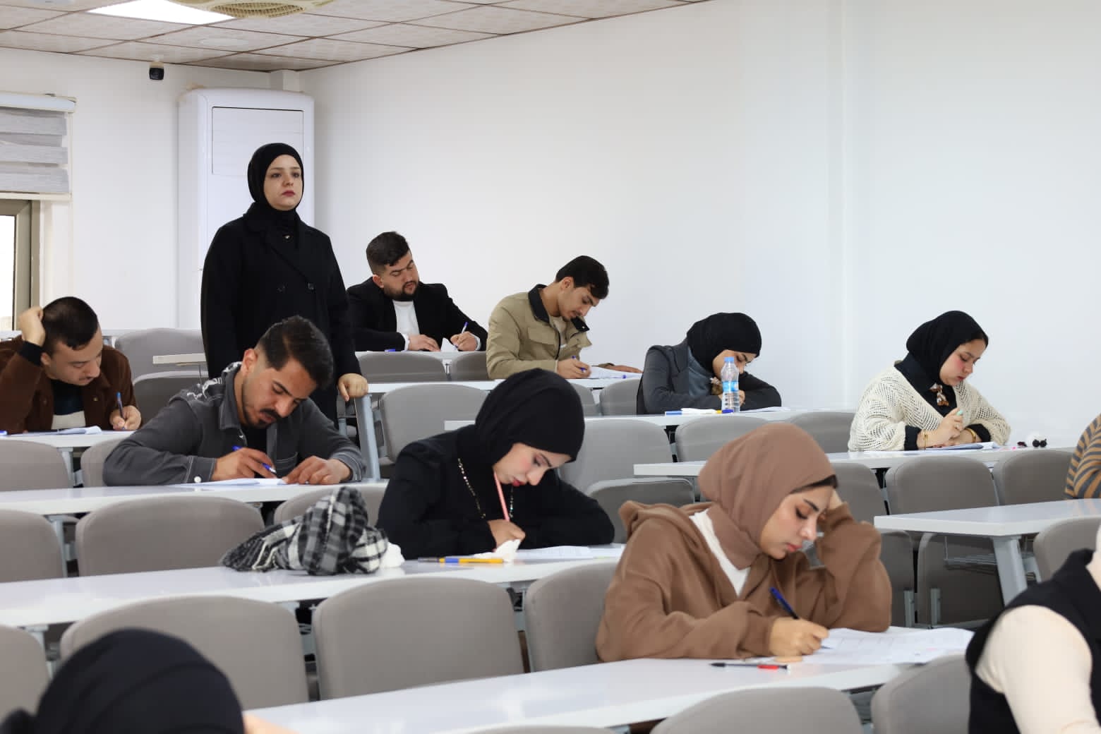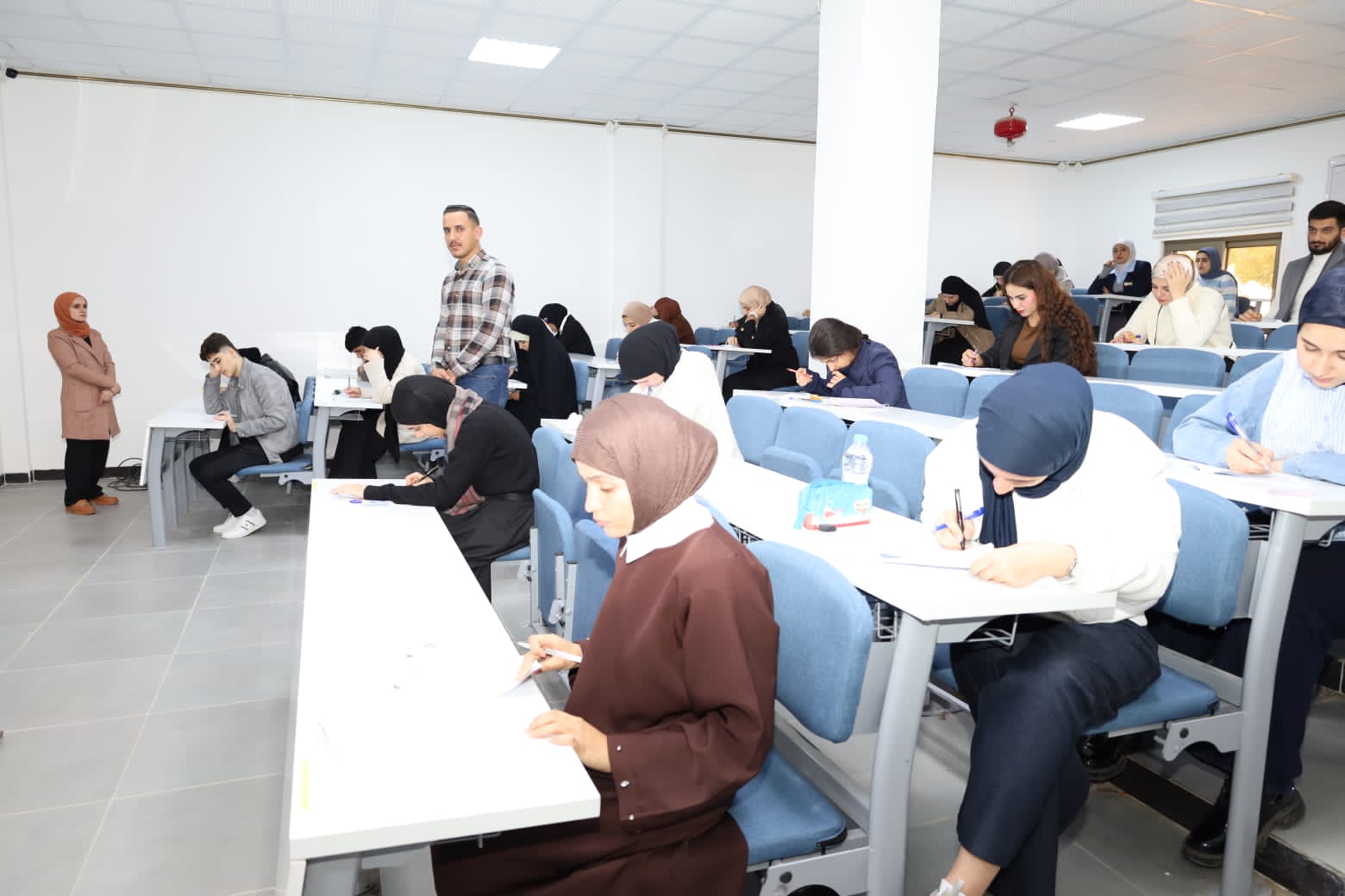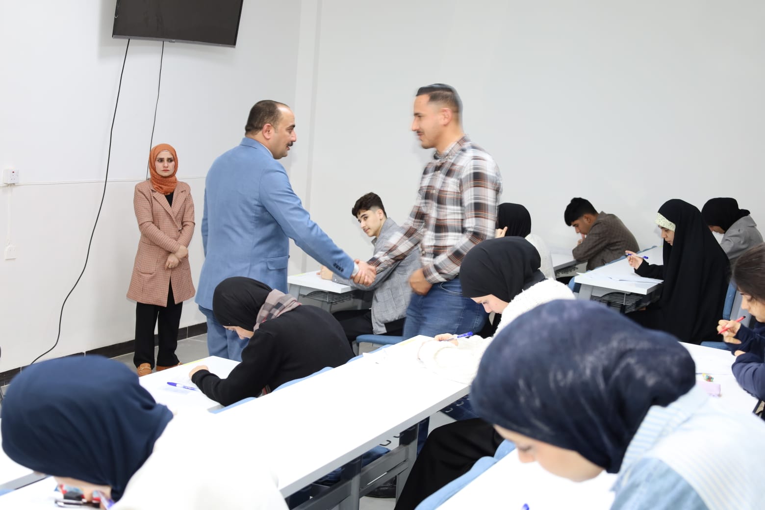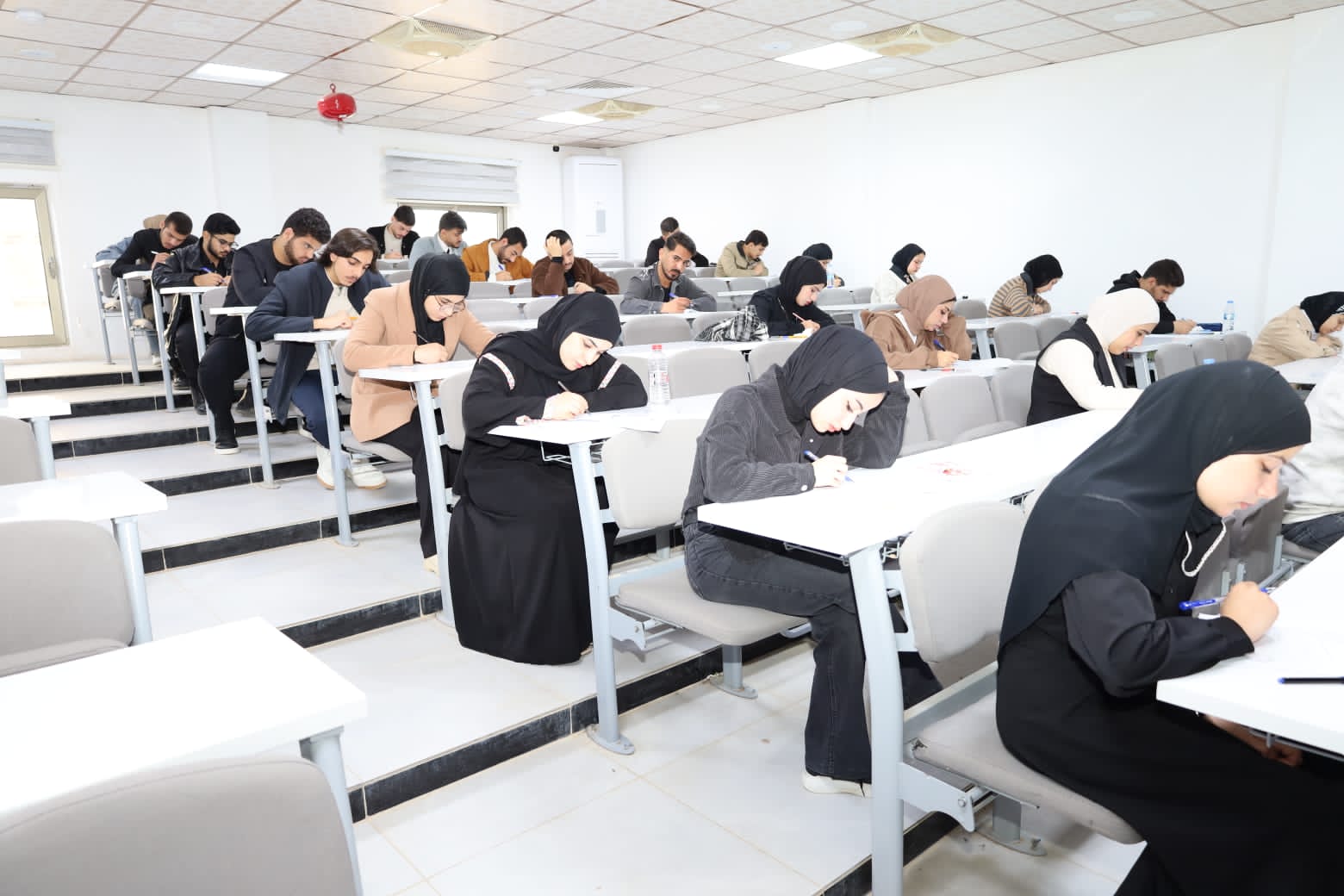 وشهدت القاعات الامتحانية متابعة ميدانية مباشرة من قبل الأستاذ المساعد الدكتور عمر صالح حسن المحترم، عميد الكلية، يرافقه الأستاذ المساعد الدكتور نهاد حسين أحمد، معاون العميد للشؤون الإدارية، والأستاذ المساعد الدكتور عمر حسين أحمد، معاون العميد للشؤون العلمية، حيث اطلعوا على سير الامتحانات وانسيابية الإجراءات التنظيمية، مؤكدين أهمية الالتزام بالتعليمات الامتحانية وتوفير جميع المستلزمات اللوجستية والخدمية التي تسهم في دعم الطلبة وتهيئة الأجواء المناسبة لأداء امتحاناتهم بكل يسر واطمئنان.