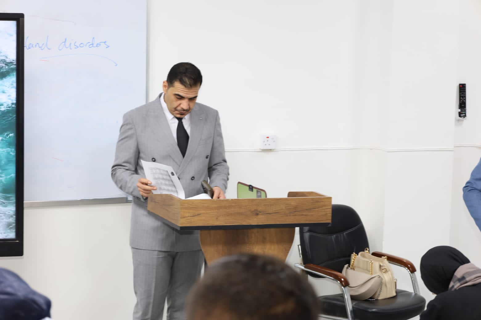 واطلع معاون العميد خلال جولته على مستوى الأداء الأكاديمي والتفاعل العلمي بين التدريسيين والطلبة، مؤكداً أهمية الالتزام بالدوام الرسمي والحضور المنتظم للمحاضرات النظرية والعملية، لما لذلك من دور فاعل في تعزيز جودة التعليم وتحقيق الأهداف العلمية للكلية.